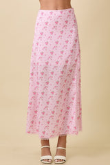 Satin Floral Midi Skirt Pink