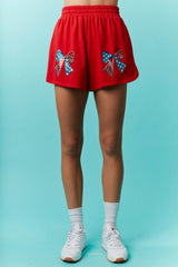American Sequin Bow Embroidery Shorts Red