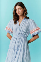 Button Down Gingham Midi Dress Blue