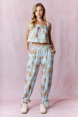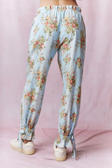 Floral Printed Ruffle Tie Detail Pants Lt Blue