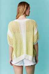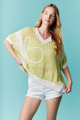 Flower 3D V-Neck Threaded Thin Sweater Lime