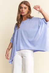 Loose Fit Dolman Solid Color Top Pastel Blue