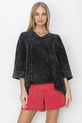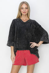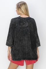 Mineral Wash Raw Detailed V-Neck Top Black