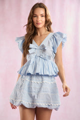 Ric Rac Trim Detail Bubble Hem Top Baby Blue