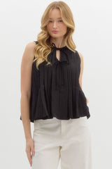Sleeveless Pleated Pullover Top Black