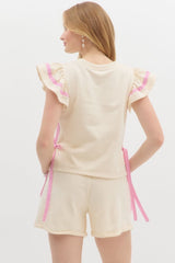 Solid Jersey Knit Flutter Sleeve Top Ecru