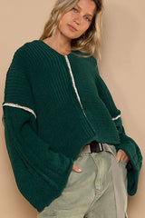 Balloon Sleeve Hoodie Sweater Forest Green