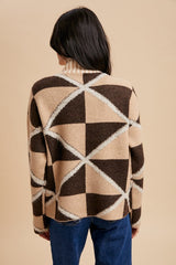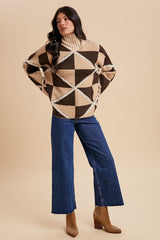 Boucle Geo Pattern High Collar Sweater Mocha