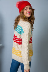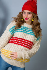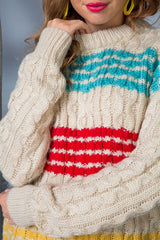 Cable Pattern Multi Stripe Oversized Sweater Top