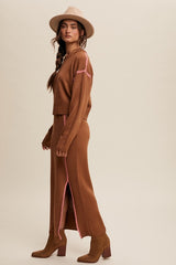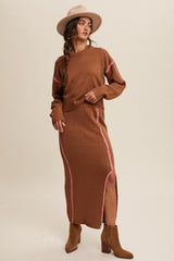 Contrast Stitch Knit Sweater Skirt Set Mocha