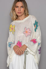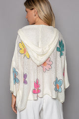 Flower Print Hooded Light Weight Sweater Ivory