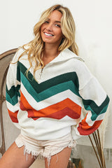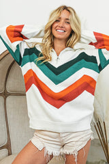 Multi Color Chevron Pattern Pullover Jade/Rust