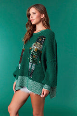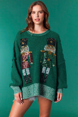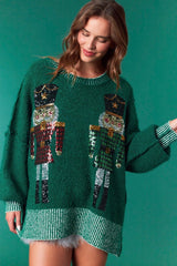 Sequins Nutcrackers Christmas Sweater Hunter Green