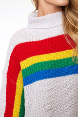 Rainbow Stripe Chunky Sweater Off White