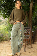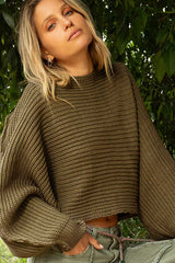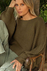 Dolman Sleeve Pullover Sweater Olive