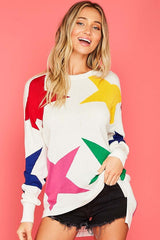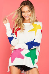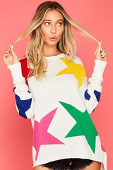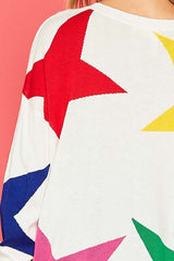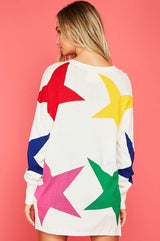 Star print sheer top featuring under lining, round neck and long sleeves.