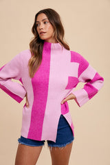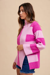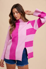 Two-Tone Wide Stripe Rib Sweater Fuchsia Combo