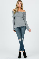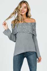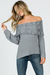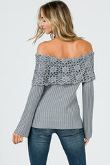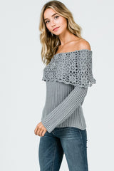 Boho Crochet Collar Off Shoulder Top Grey