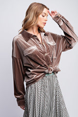 Button Down Loose Fit Velvet Top Ash