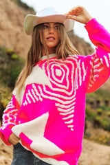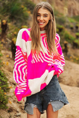 Chunky Knit pattern Detail Pullover Sweater Pink