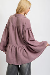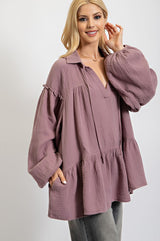 Cotton Gauze Ruffle Bottom Tunic Top Lilac Grey