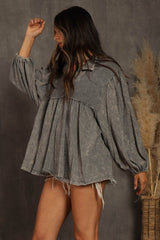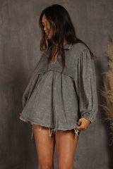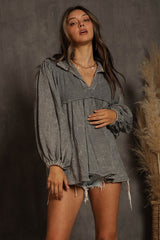 Cotton Waffle Mix Mineral Washed Top Grey