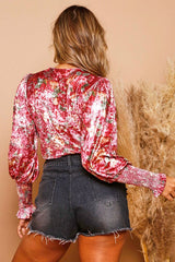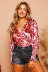 Floral Print Velvet Bodysuit Burgundy