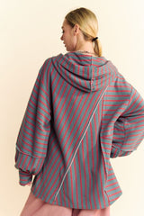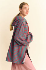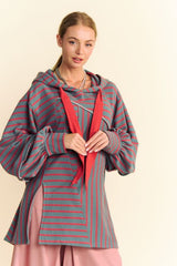 French Terry Stripe Bell Sleeve Top Seafoam Blue