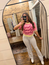 Howdy Thread Puff Sleeve Sweater Top Baby Pink