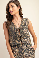 Leopard Print Tie Front Vest Brown
