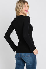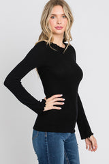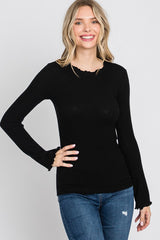 Lettuce Detail Mock Neck Solid Knit Top Black