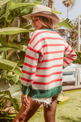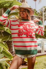 Merry & Bright Stripe Knit Top Ivory/Red