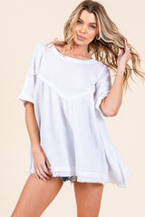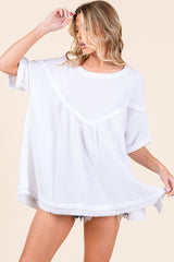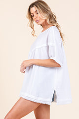 Mineral Wash Fringe Hem Oversized Top White