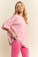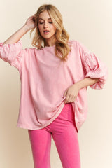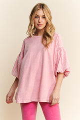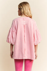 Mineral Washed Eyelet Puff sleeved Blouse Pink