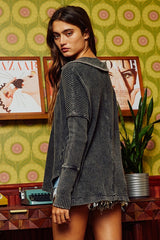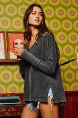 Mineral Washed Waffle Knit Top Charcoal