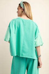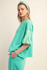 Mixed Jersey Short Puff Sleeved Tee Emerald
