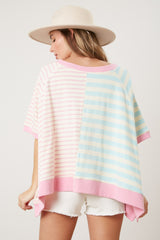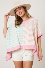 Multi Stripe Short Sleeve Sweatshirt Blue/Pink