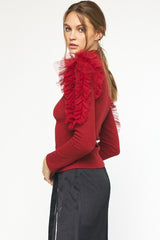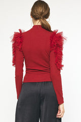Mock Neck Ruffle Detail Sleeve Top Ruby