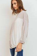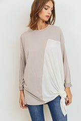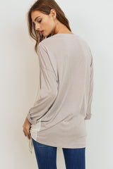 3/4 Sleeves Contrast Side Tie Modal Knit Top
