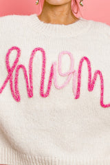 Mom Metallic Letter Hairy Top Ivory