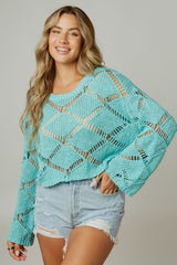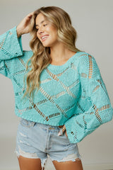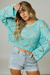 Open Stitch Boxy Knit Top Mint