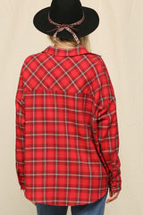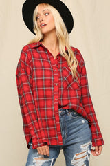 Oversized Button Down Plaid Shirt Red