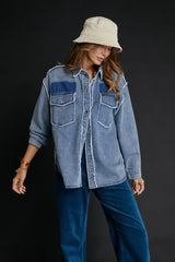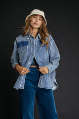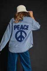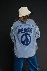 Peace Embroidery Back Shacket Denim