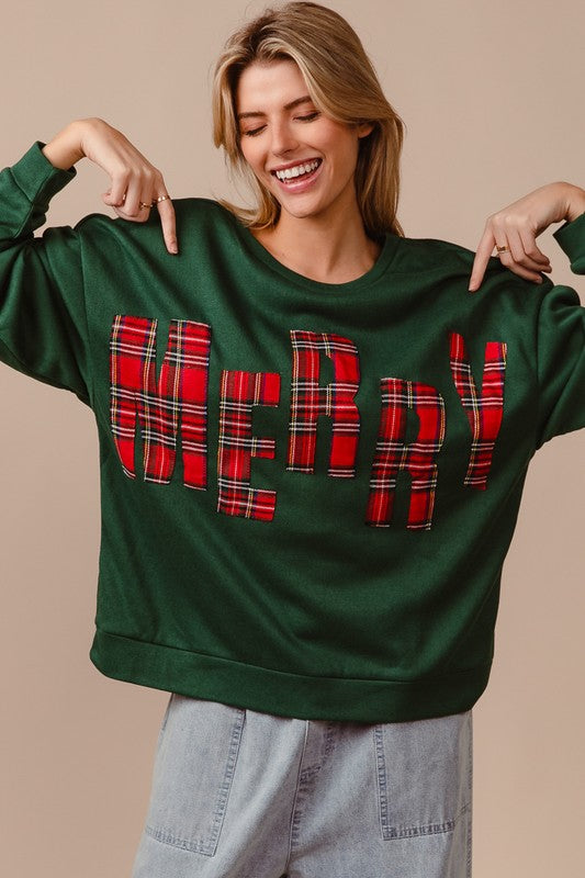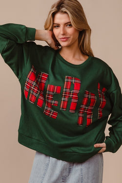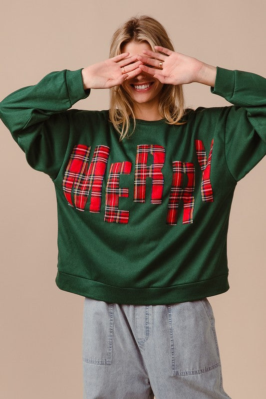 Plaid Merry Lettering Fleece Top Green/Red