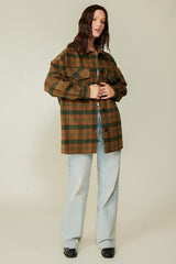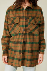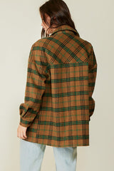 Plaid Print Oversized Shacket Green Combo