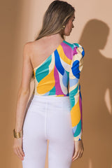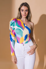 Printed Knit Puff Shoulder Bodysuit Mint/Royal