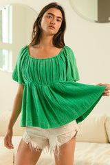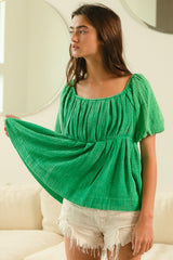 Puff Sleeve Vintage Wash Top Vintage Jade