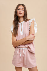 Ruffle Sleeve Top And Shorts Set Light Pink