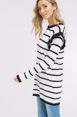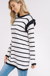 Ruffle Striped Tunic Top Oatmeal