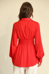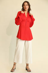 Satin Deel and Plunge Tunic Top Red